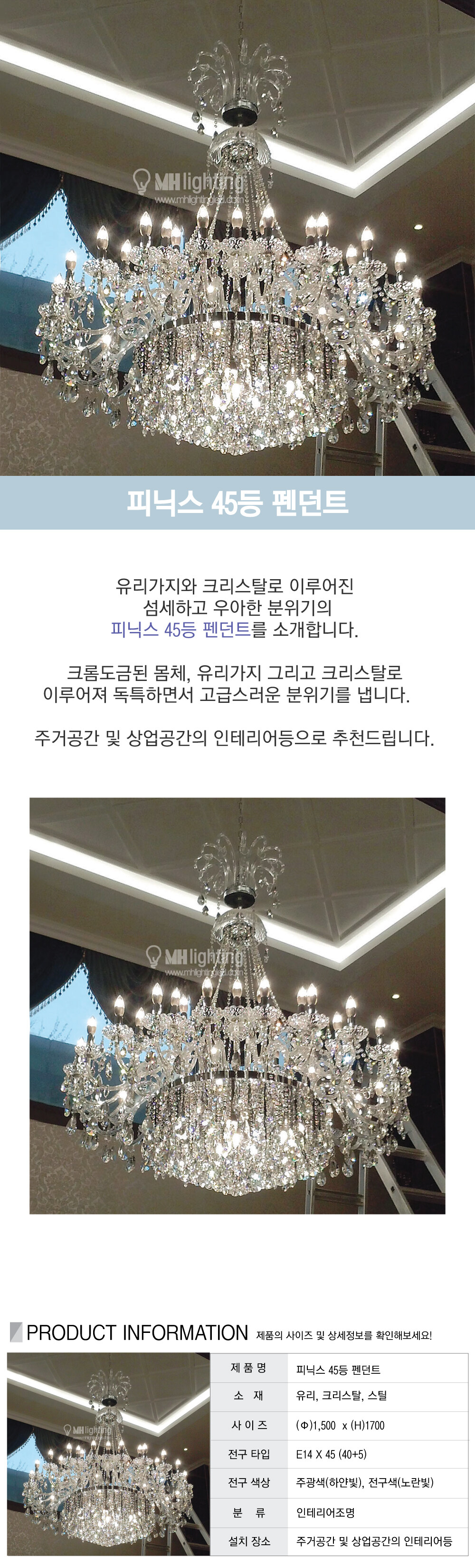 유리가지와 크리스탈로 이루어진 섬세하고 우아한 분위기의 피닉스 45등 펜던트를 소개합니다.
