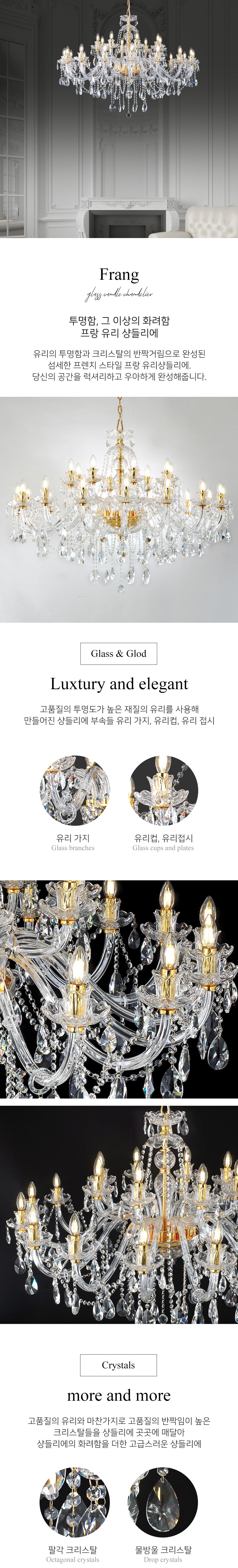 팔각 크리스탈과 물방울 크리스탈이 어우러져 고급스러움을 더한 샹들리에