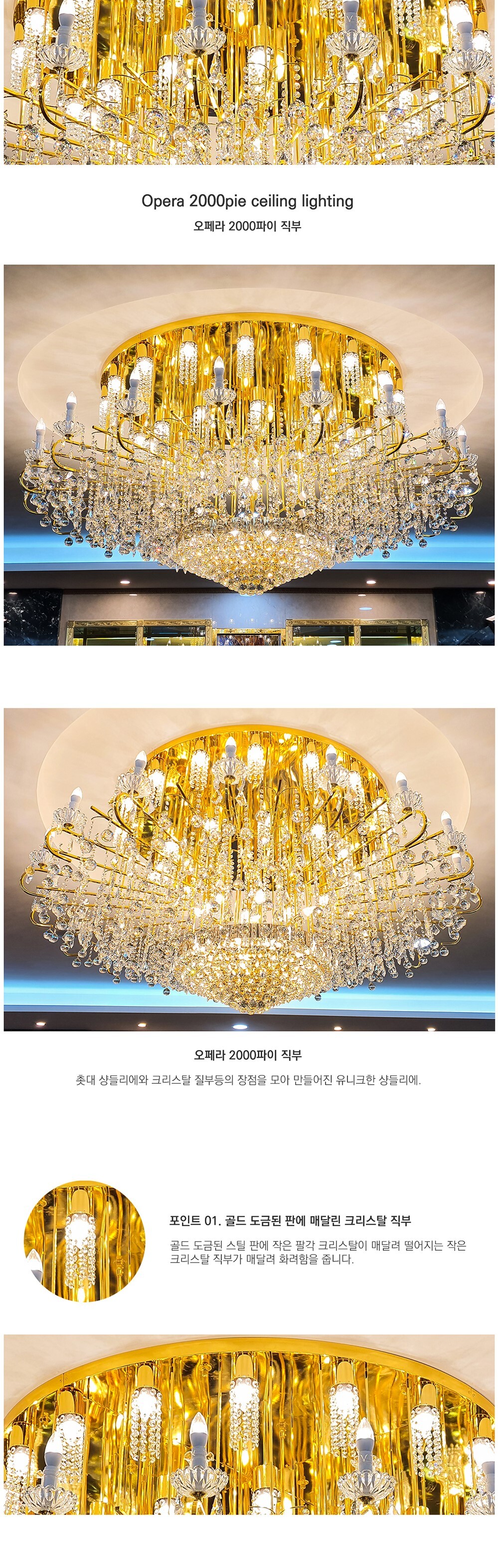 하단의 지구볼 크리스탈과 골드 가지에 매달려 떨어지는 풍성한 크리스탈이 화려함을 더하는 직부등