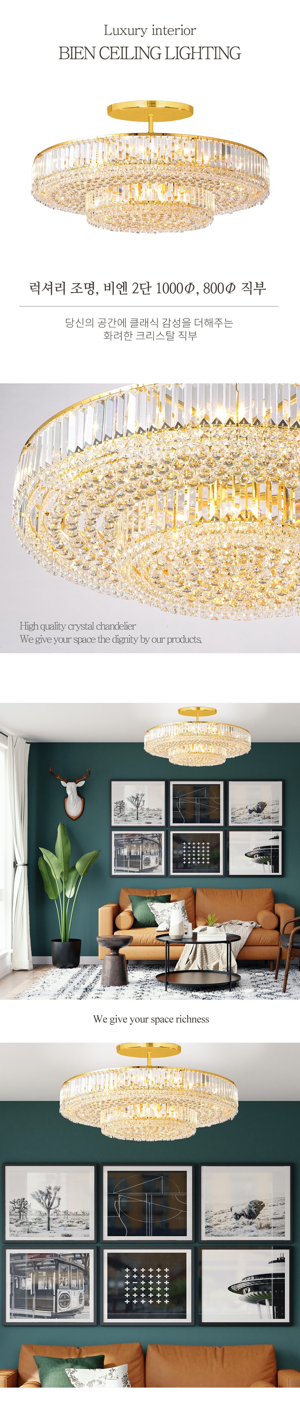 지구볼 크리스탈과 프리즘 및 사각 크리스탈이 섬세하게 자리잡아 더욱 화려하고 럭셔리한 직부등