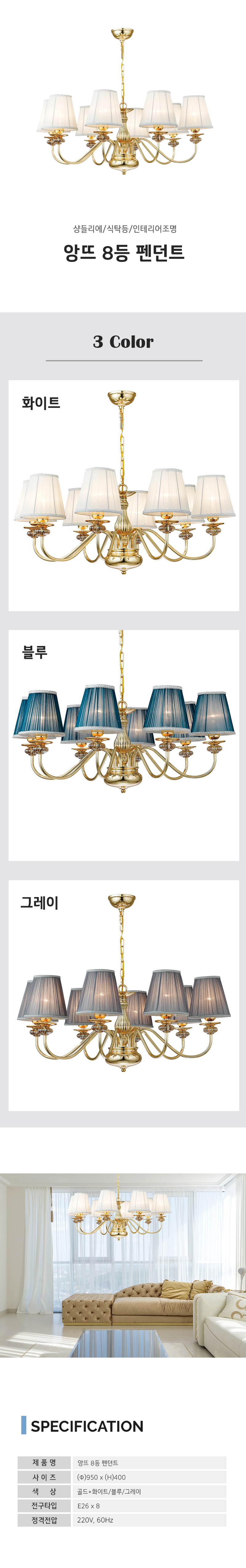 앙뜨 8등 펜던트 (3 color)