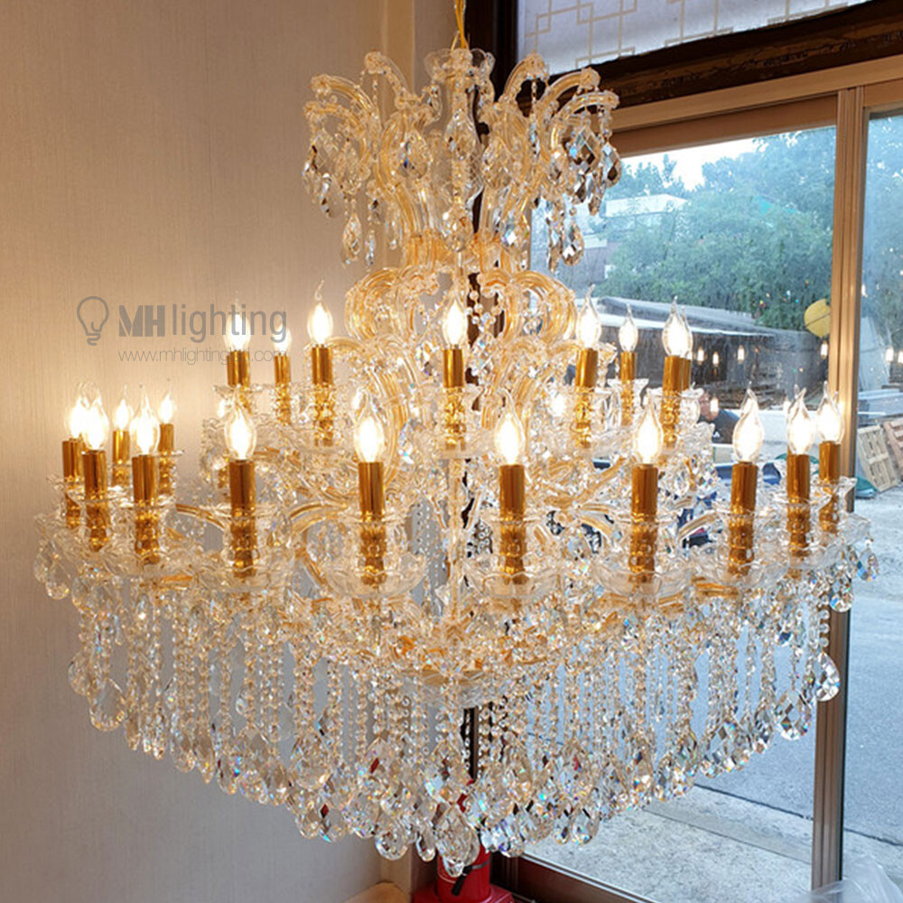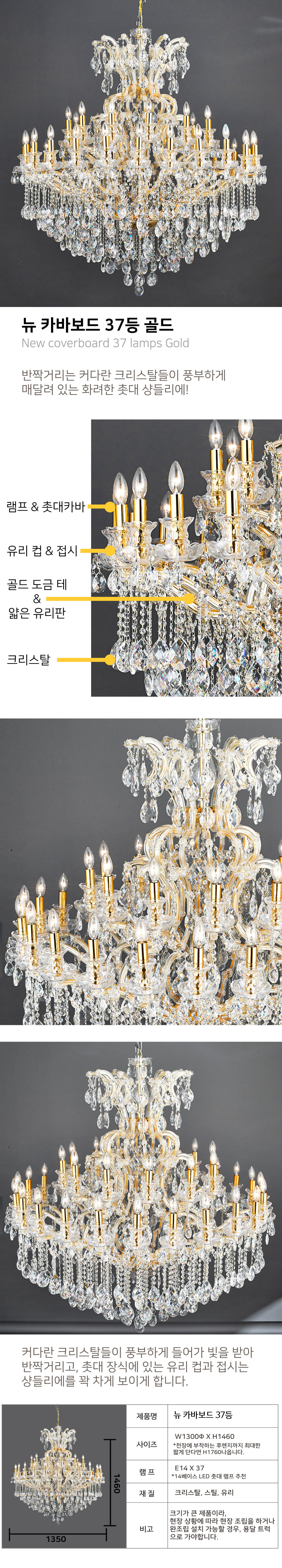반짝거리는 커다란 크리스탈이 풍부하게 매달려있는 촛대 샹들리에