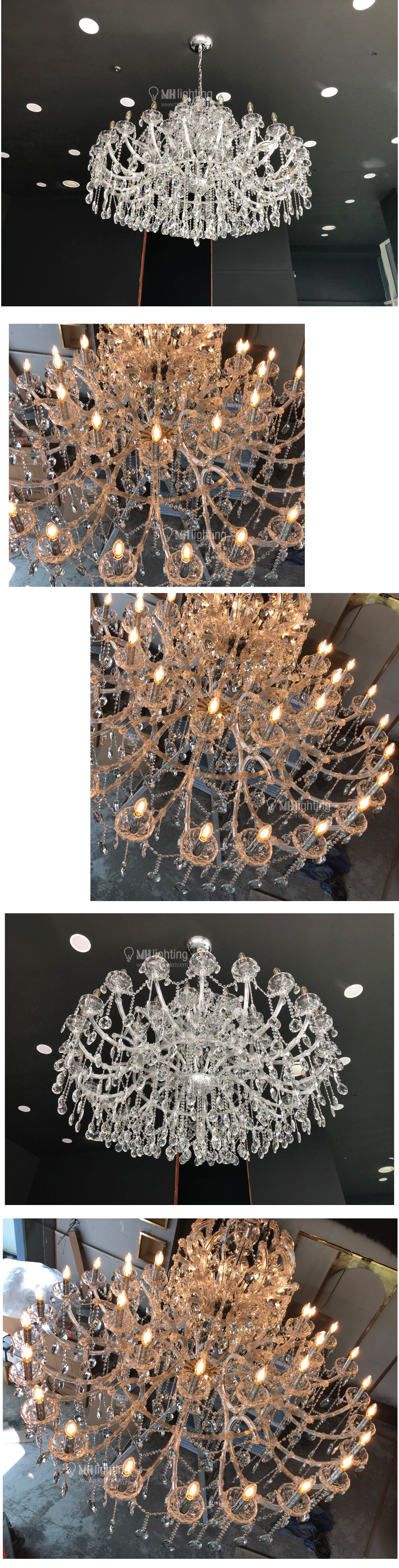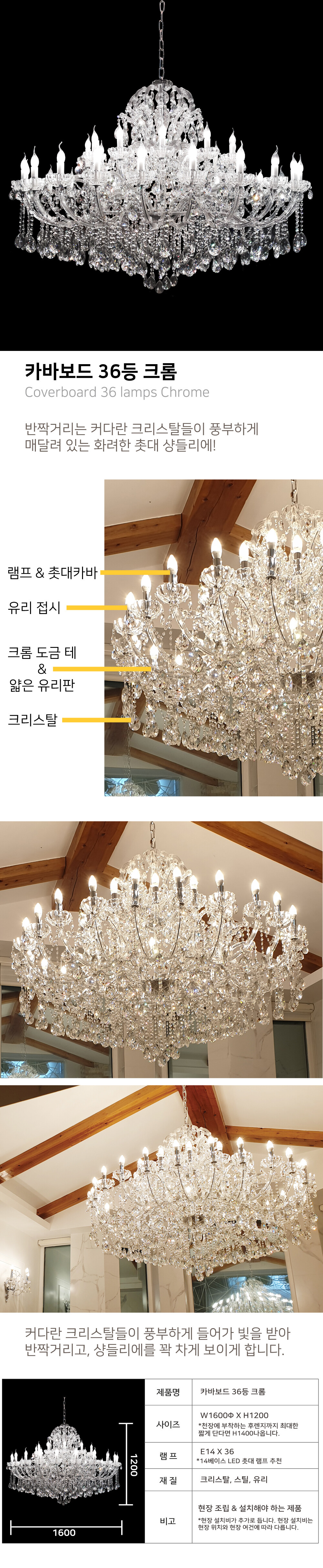 반짝거리는 커다란 크리스탈들이 풍부하게 매달려 있는 화려한 촛대 샹들리에