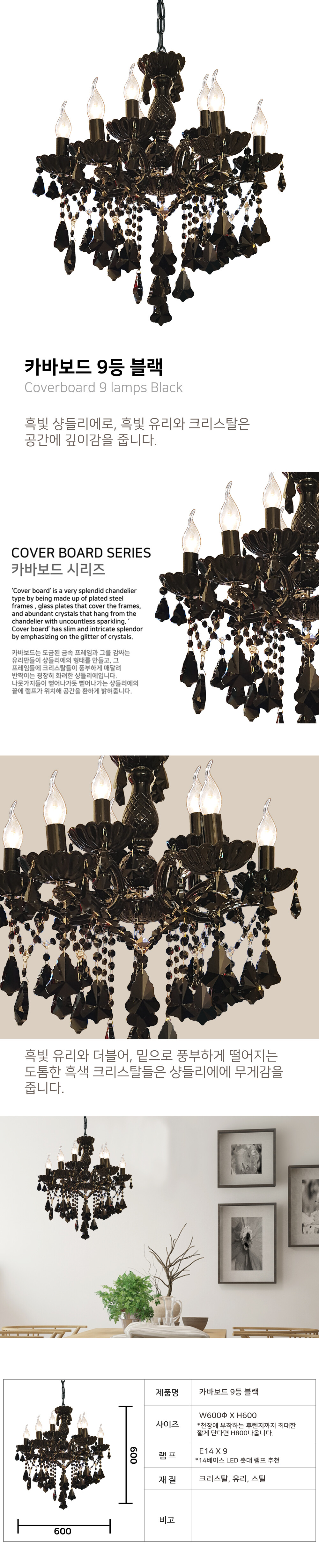 흑빛 샹들리에로 유리와 크리스탈은 공간에 깊이감을 줍니다