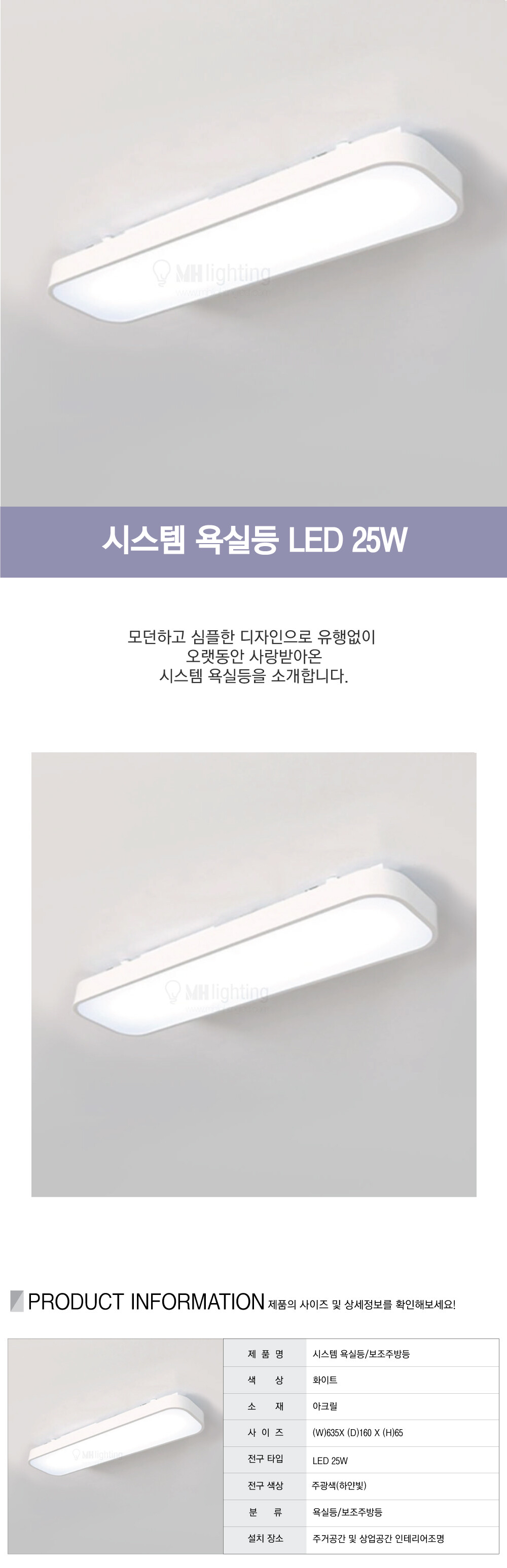 시스템 화이트 욕실등 LED 25W