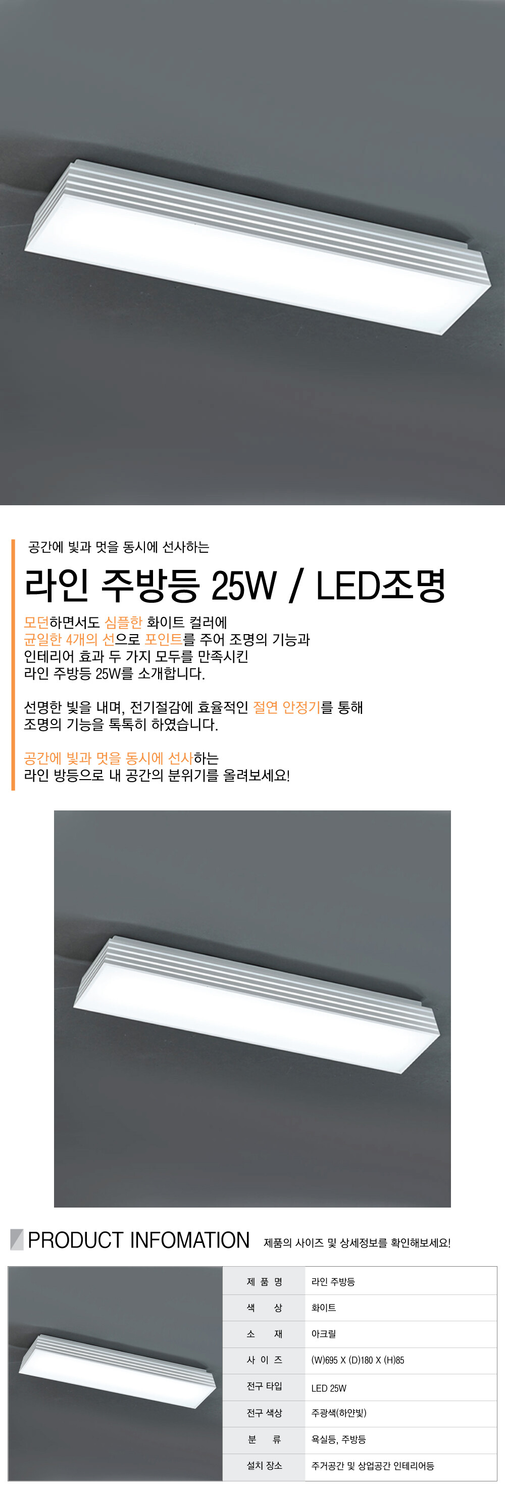라인 주방1등 LED 25W