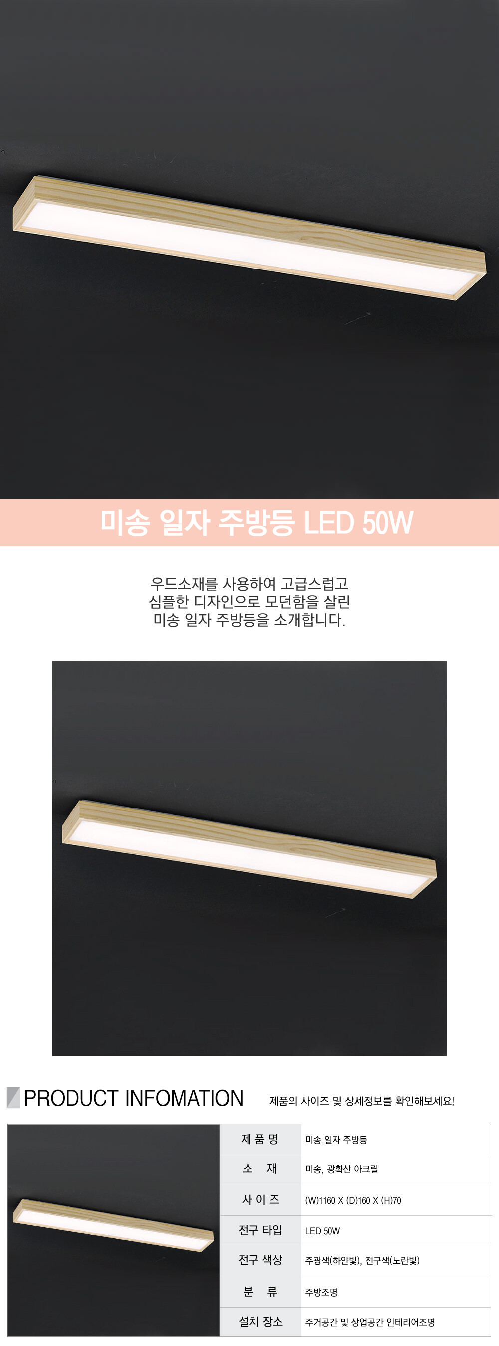 우드소재를 사용하여 고급스럽고 심플한 디자인으로 모던함을 살린 미송일자주방등
