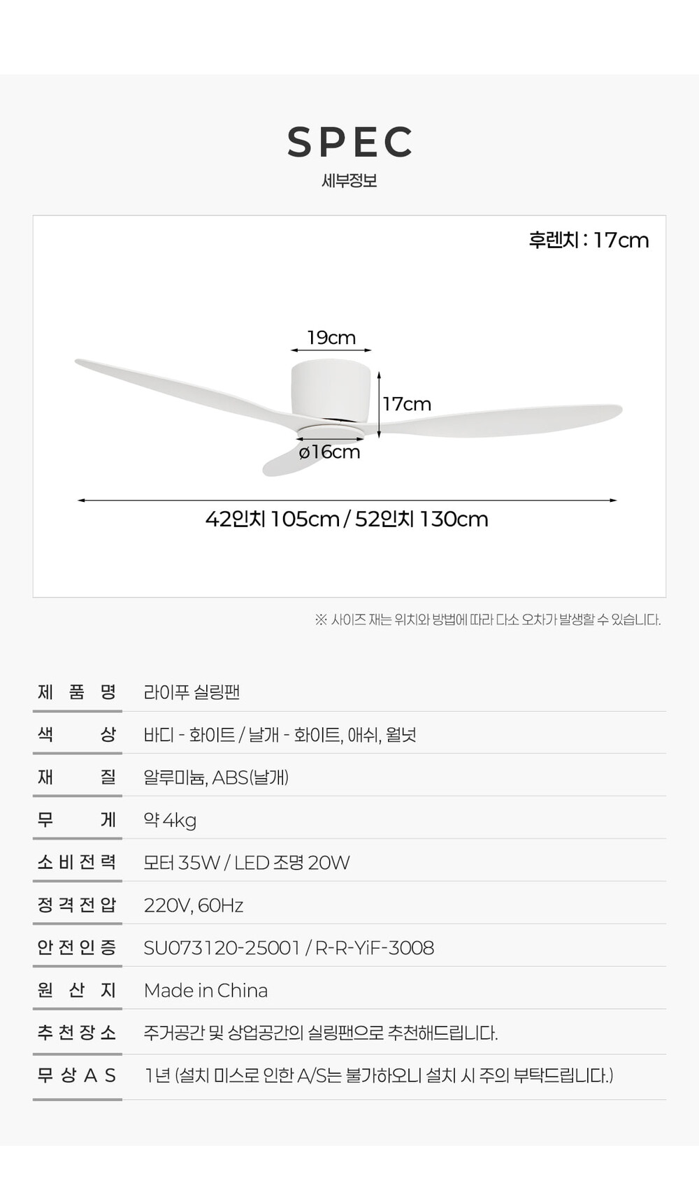 라이푸 실링팬 42인치/52인치 (3 color)