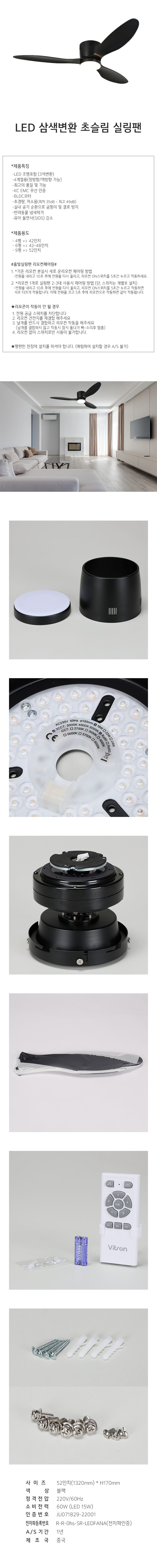 LED 삼색변환 초슬림 실링팬 [블랙] 52인치