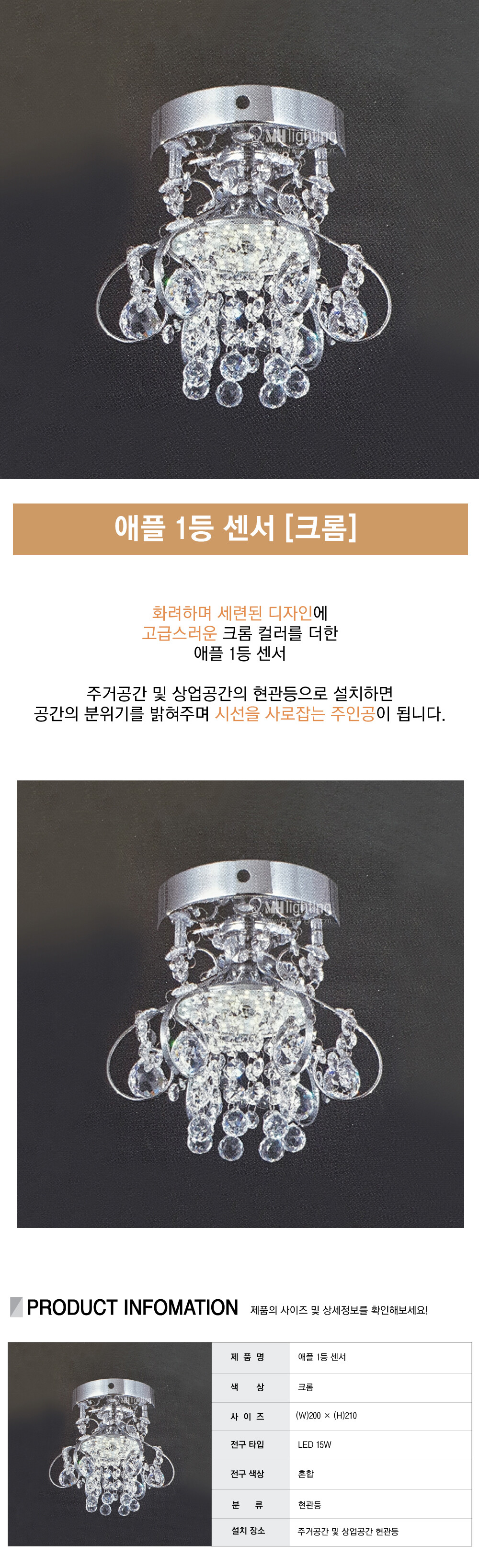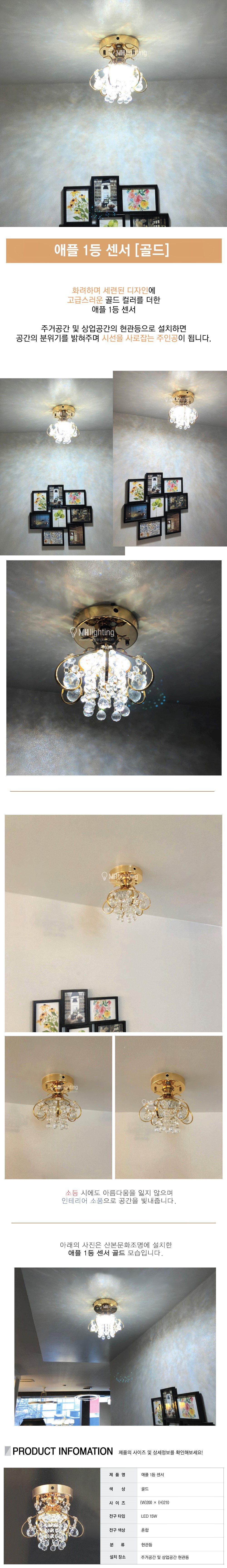 애플 1등 센서 [크롬,골드] / LED 15W