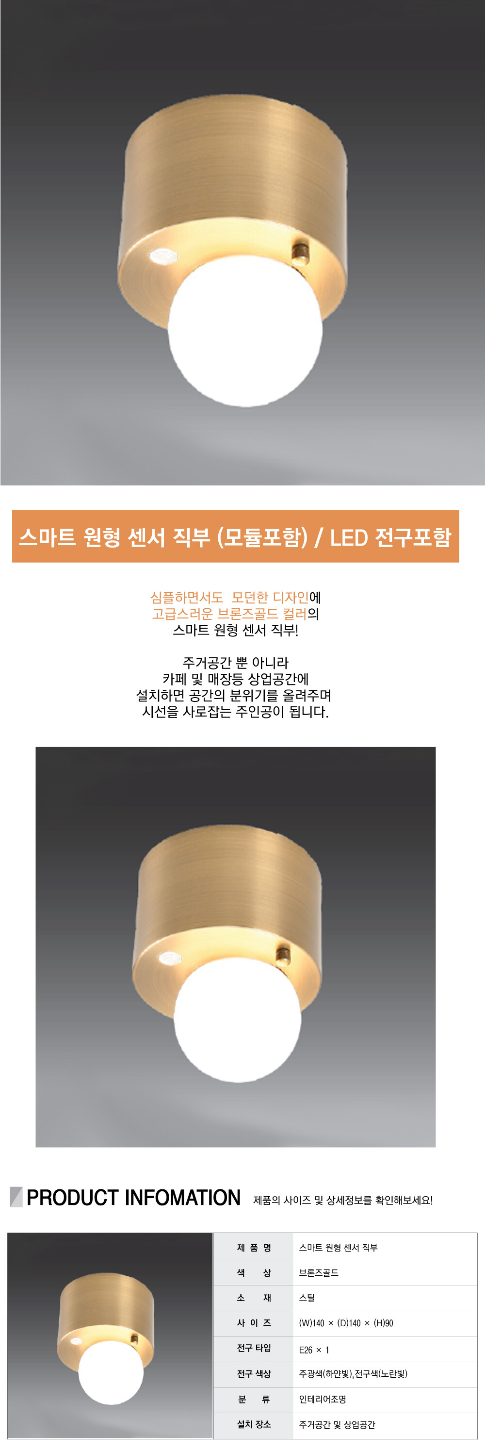 스마트 원형 센서 직부 브론즈(모듈포함) / LED 전구 사용