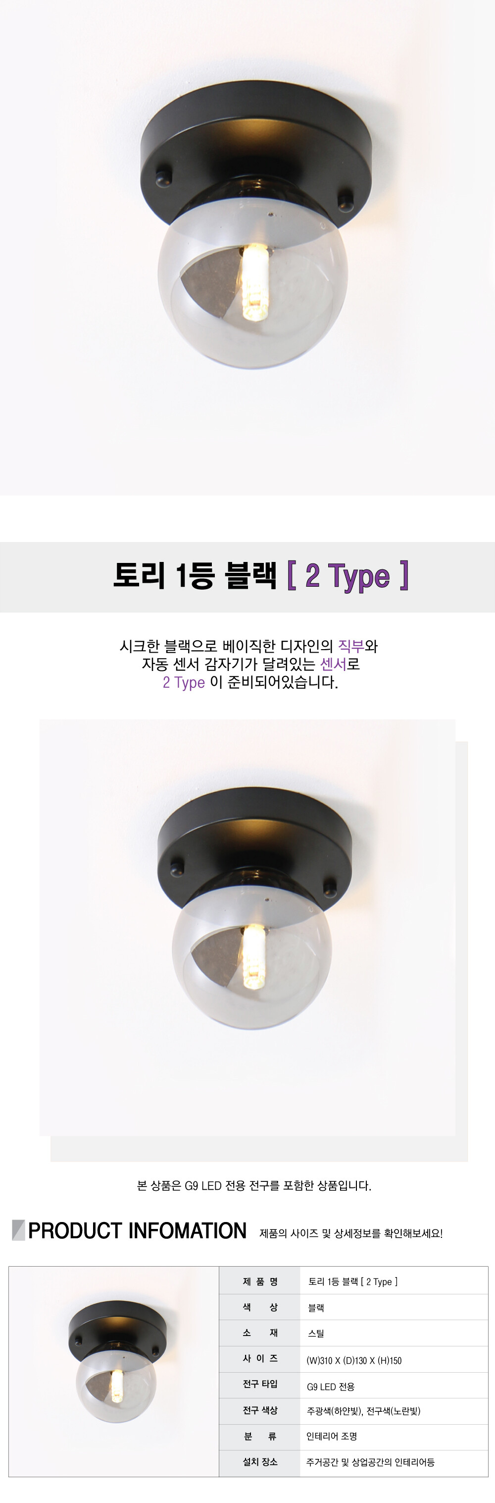 토리 블랙 1등 [직부,센서] LED G9 전구포함