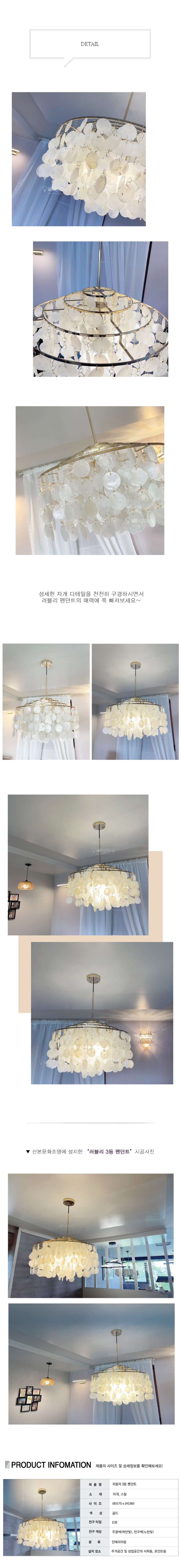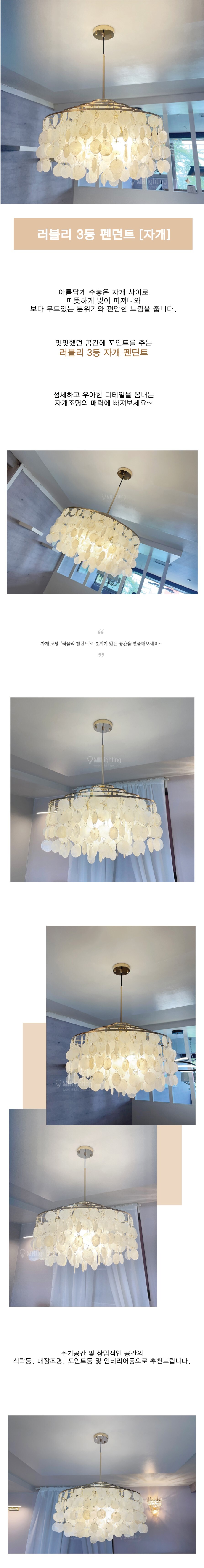 아름답게 수놓은 자개 사이로 따뜻하게 빛이 퍼져나와 보다 무드있는 분위기와 편안한 느낌을 주는 러블리 3등 자개 펜던트