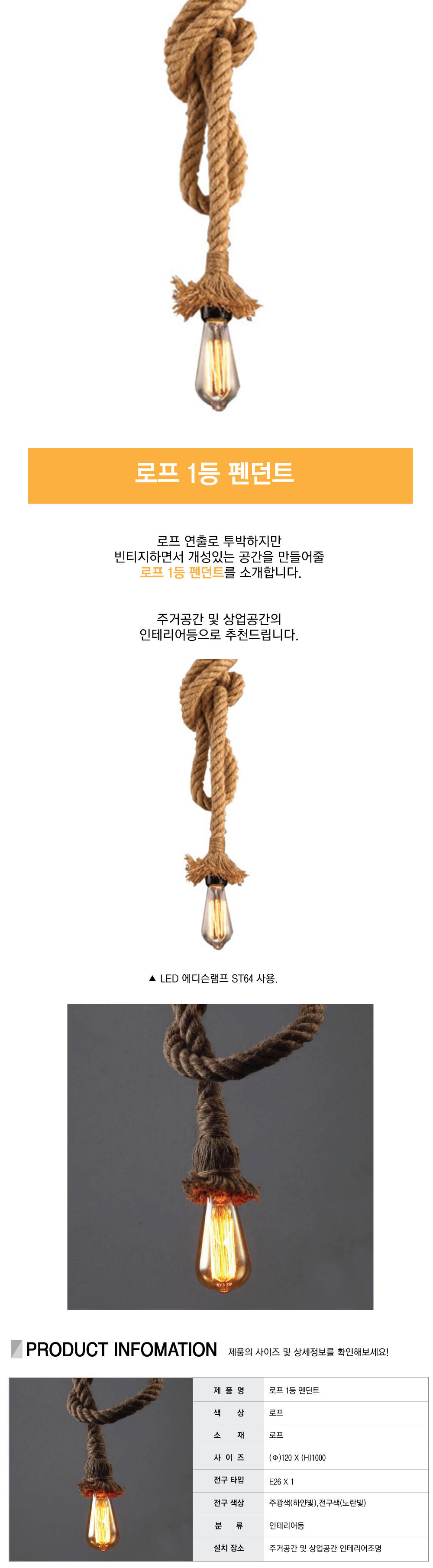 로프 연출로 투박하지만 빈티지하면서 개성있는 조명