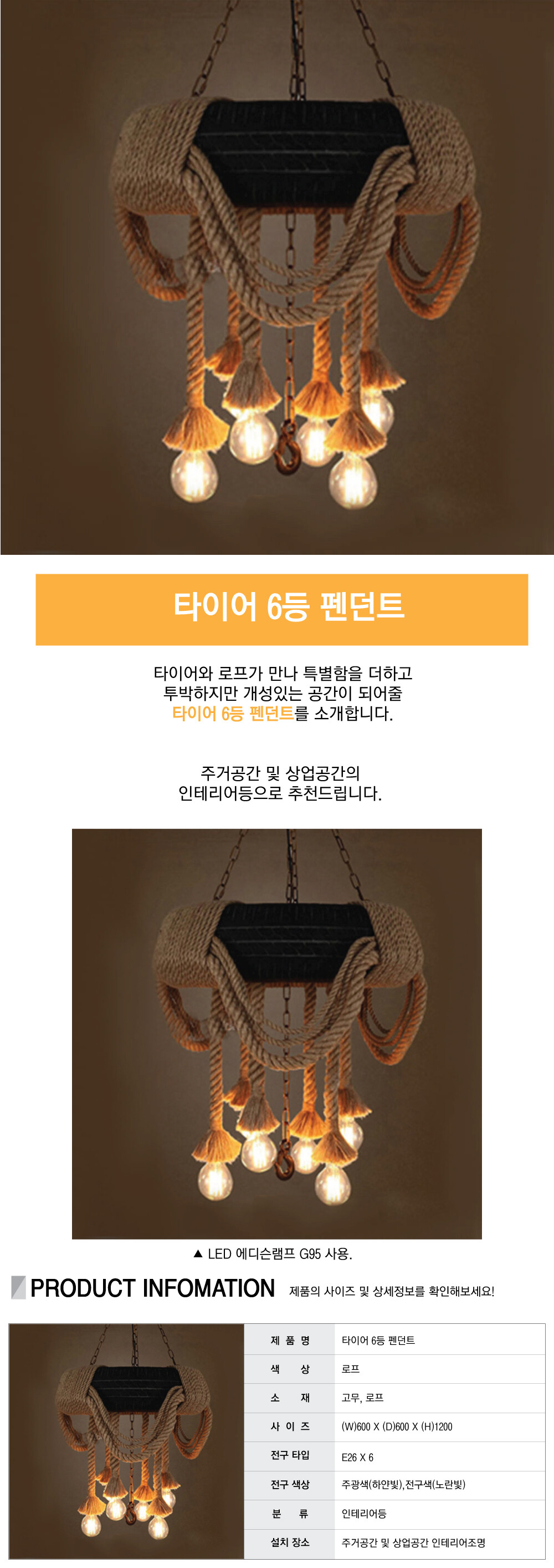 타이어와 로프가 만나 특별함을 더하고 투박하지만 개성있는 디자인 조명