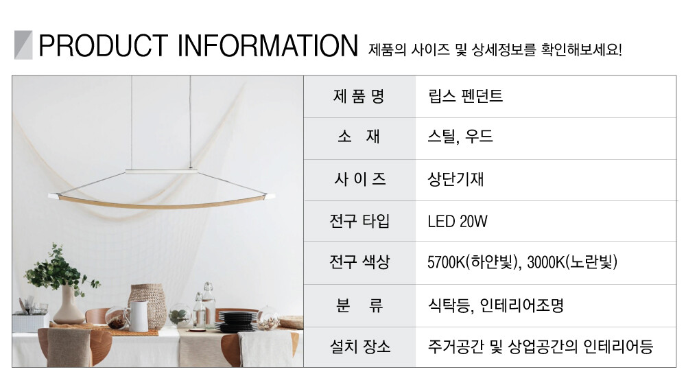 매끈한 우드 바디와 화이트 디테일이 만들어낸 세련된 디자인의 조명입니다.