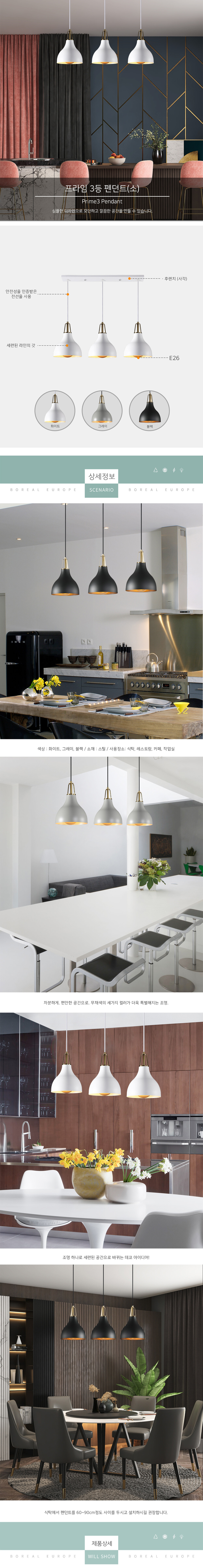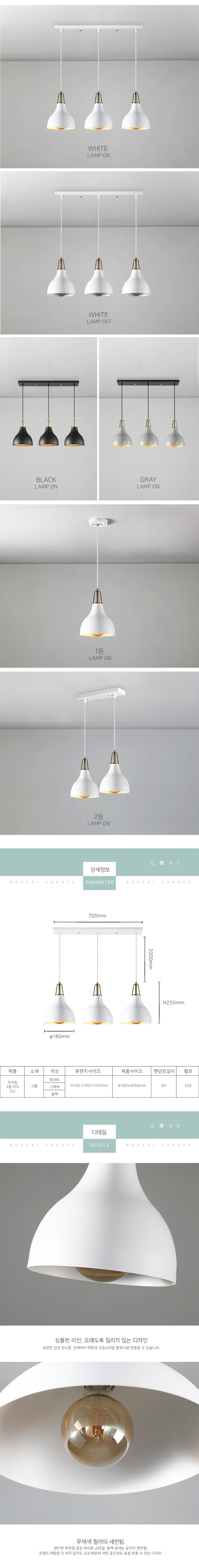 프레임 3등 펜던트 (소) [3color]