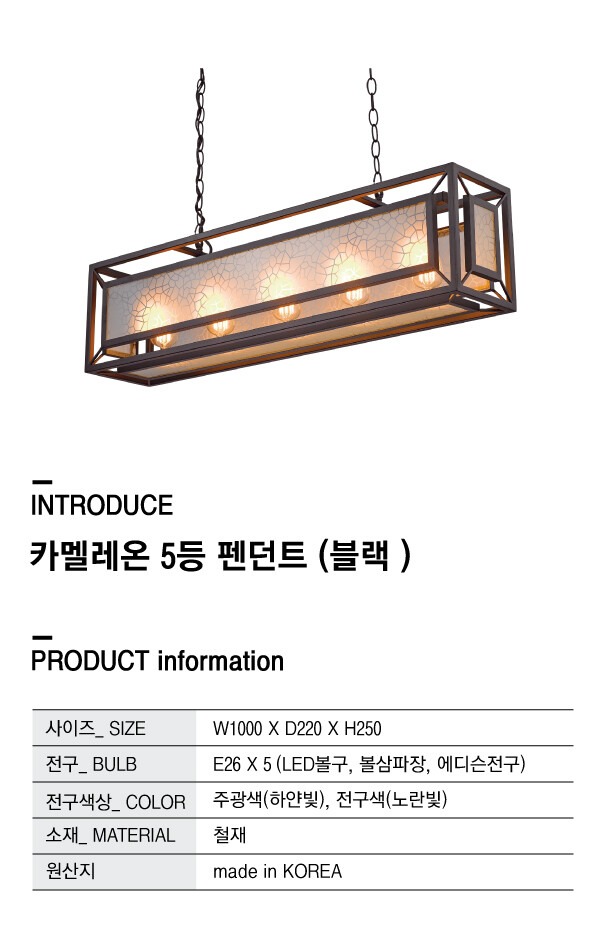 카멜레온 직사각 5등 펜던트 (골드,블랙) [tvN 도깨비 협찬]
