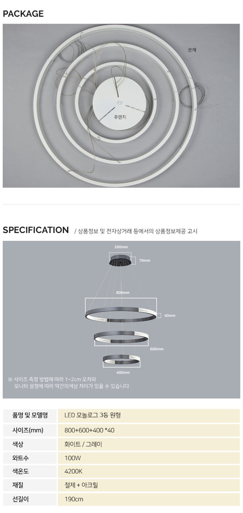 LED 모놀로그 3등 원형 펜던트 100W [2color]