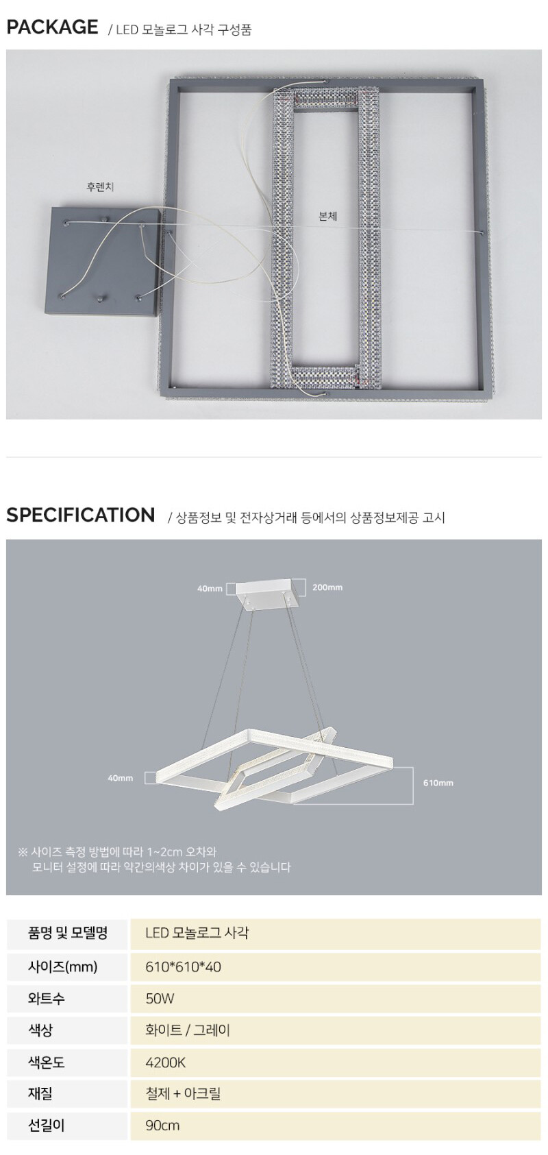 LED 모놀로그 2단 사각 펜던트 50W [2color]