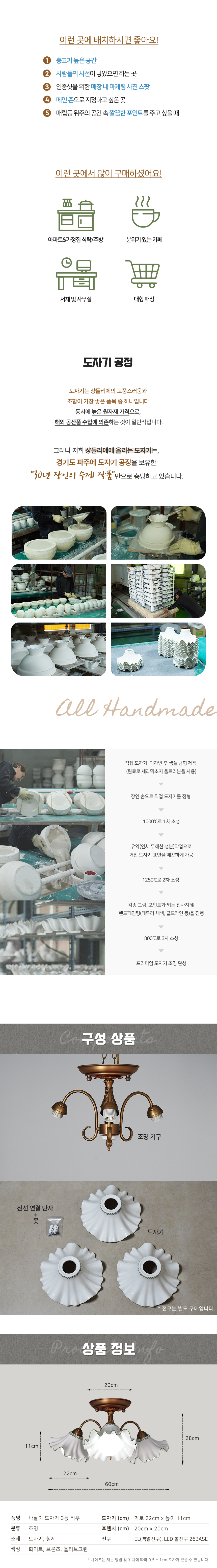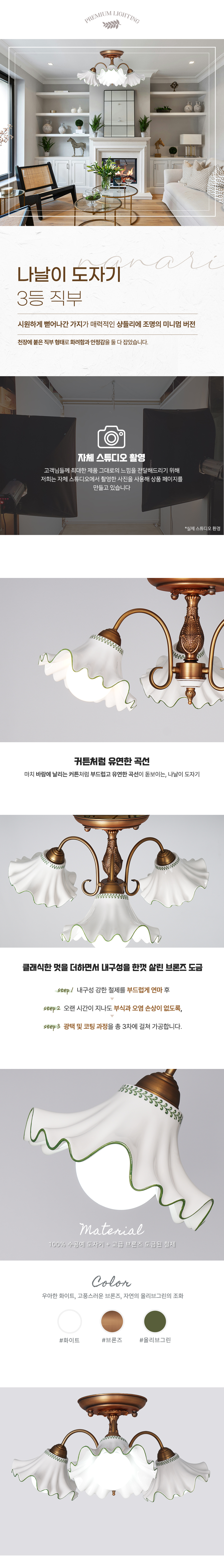 나날이 도자기 원형 3등 직부
