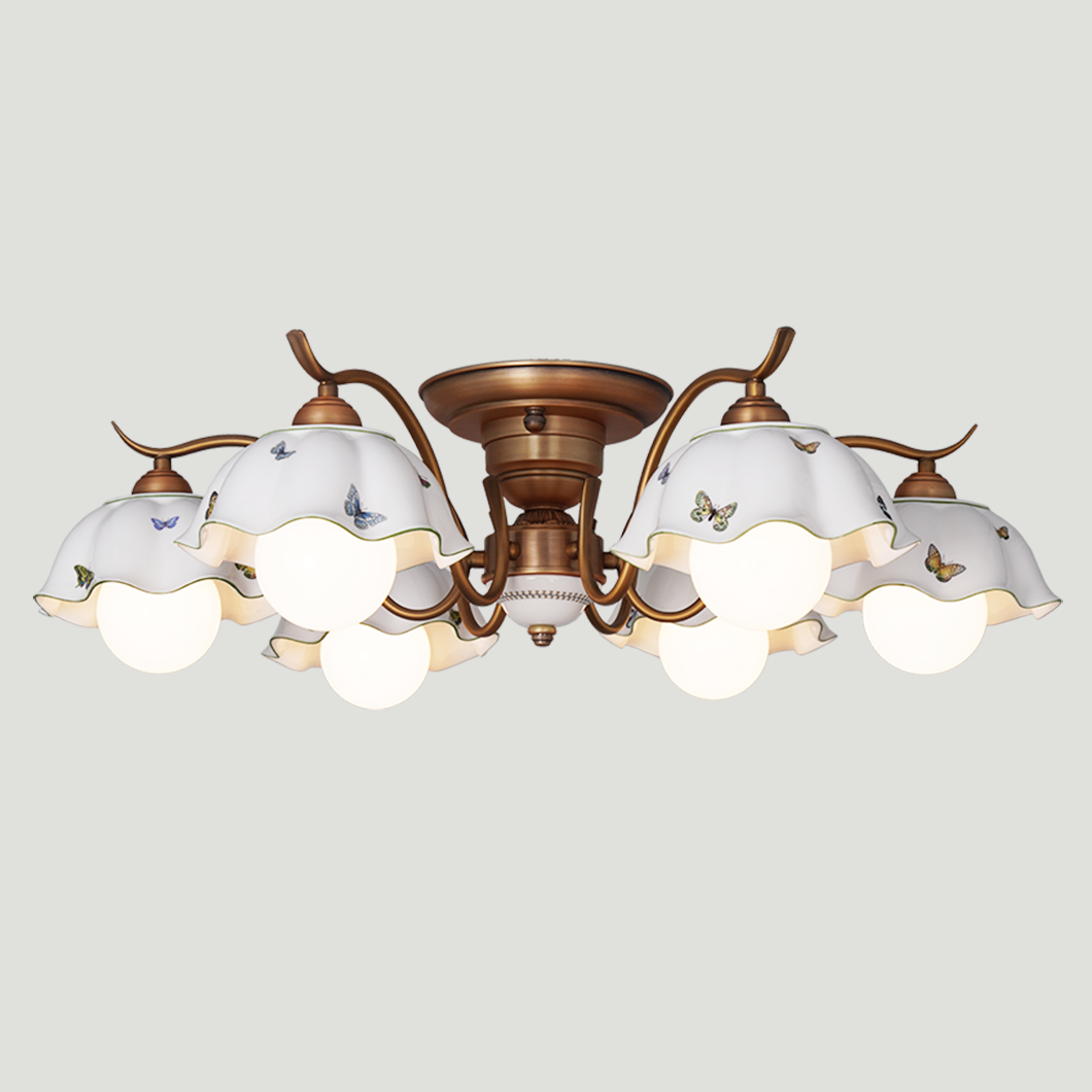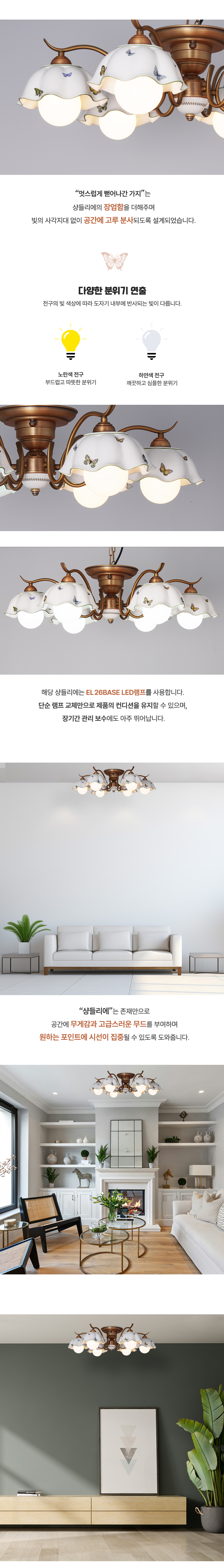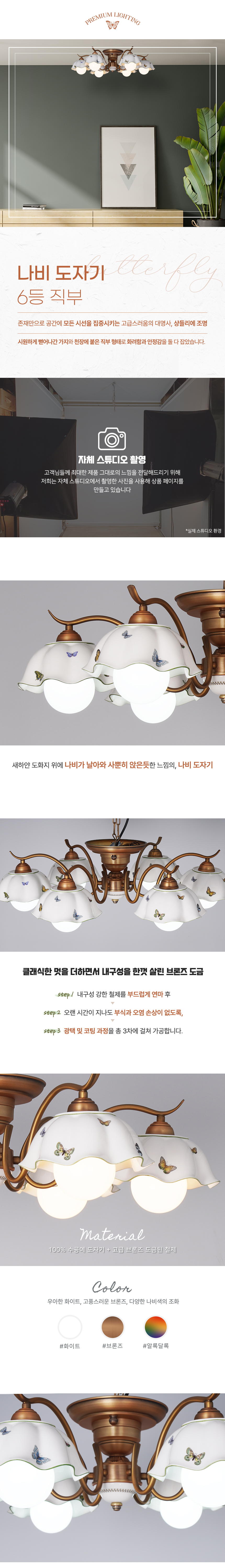 꽃잎처럼 펼쳐진 갓에 나비가 내려앉은 듯한 디자인의 도자기조명. 부드러운 곡선의 도자기 갓은 공간을 부드럽게 바꿔주며, 엔틱한 바디는 고급스러움을 한층 끌어올려줍니다.