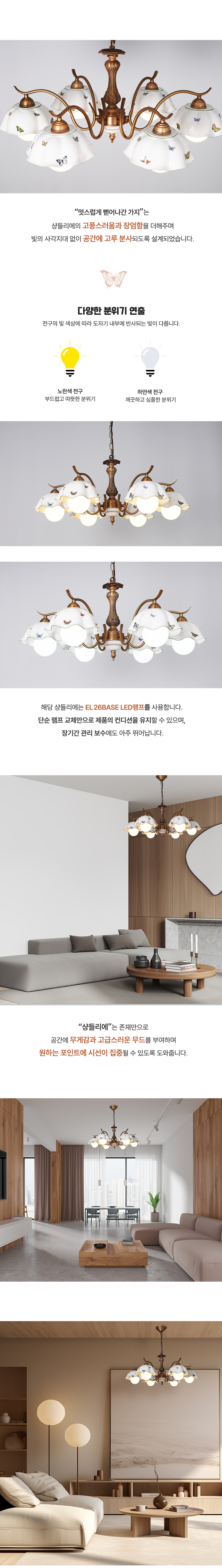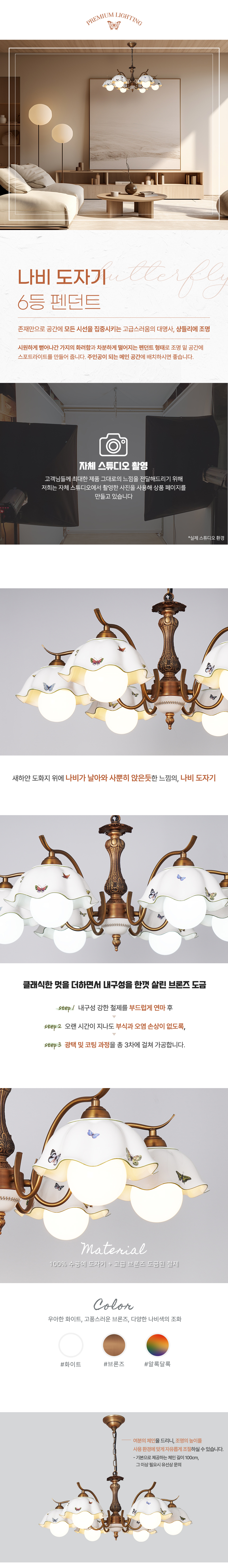 꽃잎처럼 펼쳐진 갓에 나비가 내려앉은 듯한 디자인의 도자기조명. 부드러운 곡선의 도자기 갓은 공간을 부드럽게 바꿔주며, 엔틱한 바디는 고급스러움을 한층 끌어올려줍니다.