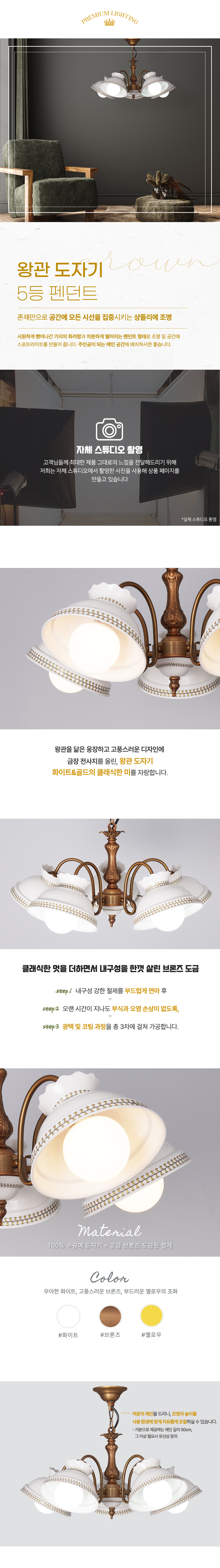 왕관 도자기 원형 5등 펜던트