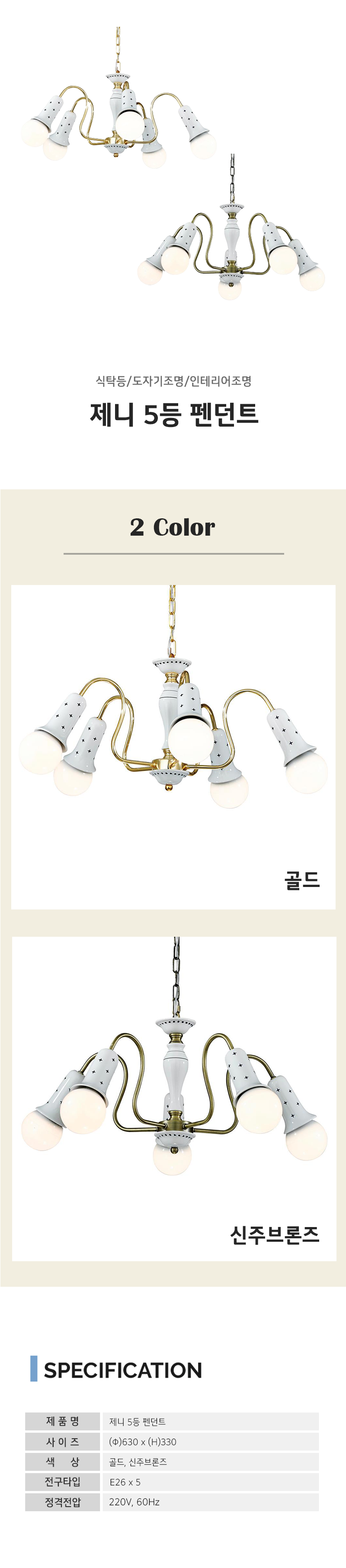 제니 5등 펜던트 (2 color)