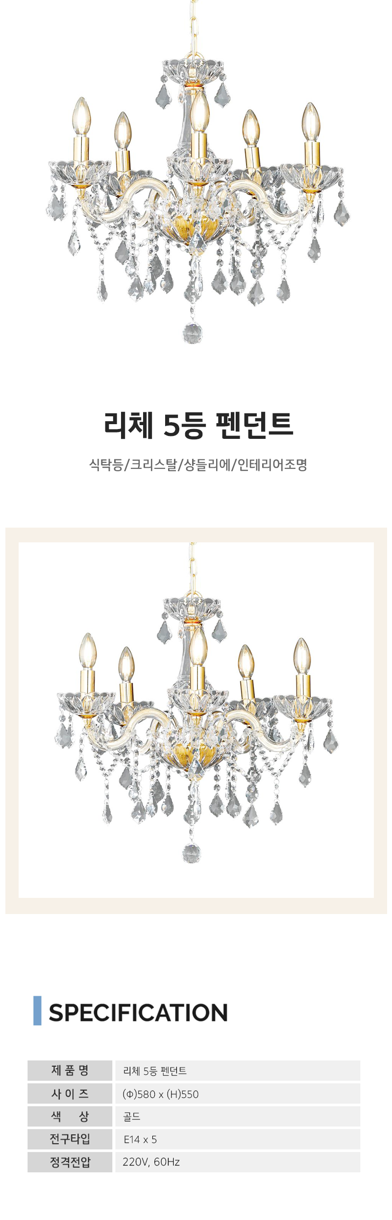 리체 크리스탈 5등 펜던트