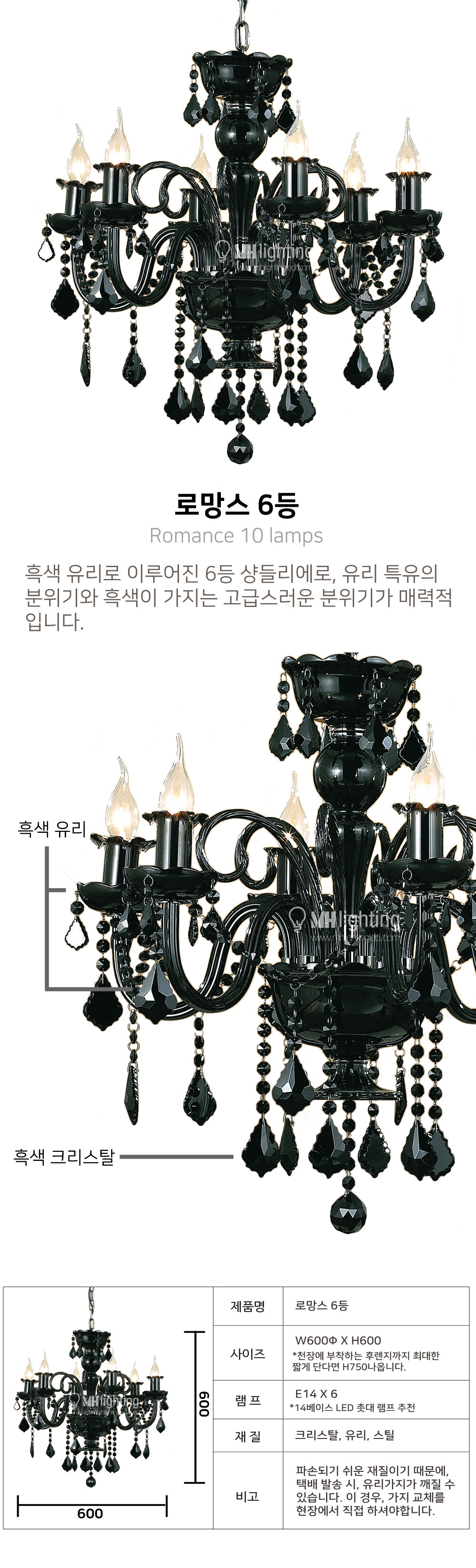 유리 특유의 분위기와 흑색이 가지는 고급스러운 분위기가 매력적인 샹들리에