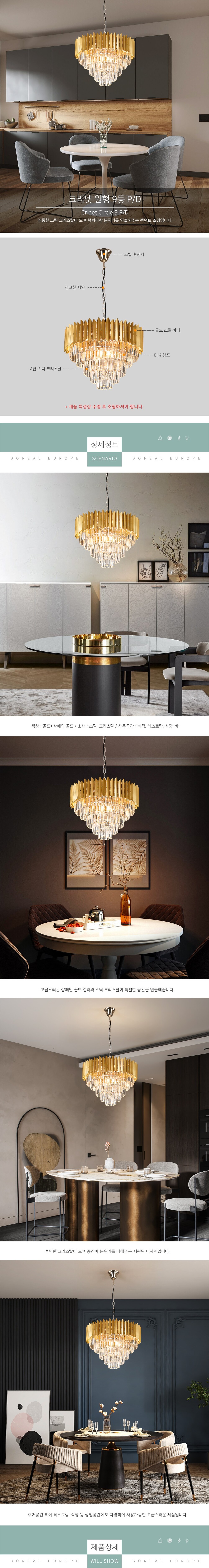 영롱한 스틱 크리스탈이 모여 럭셔리한 분위기를 연출해주는 펜던트 조명입니다.