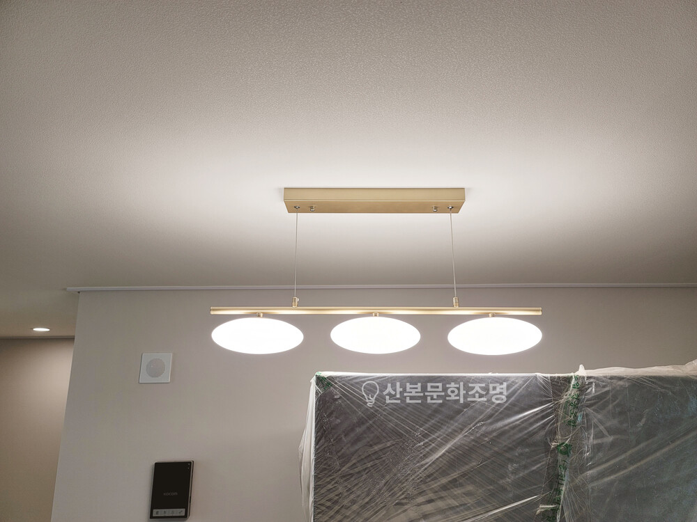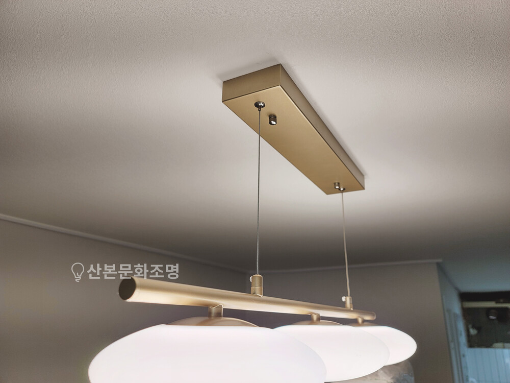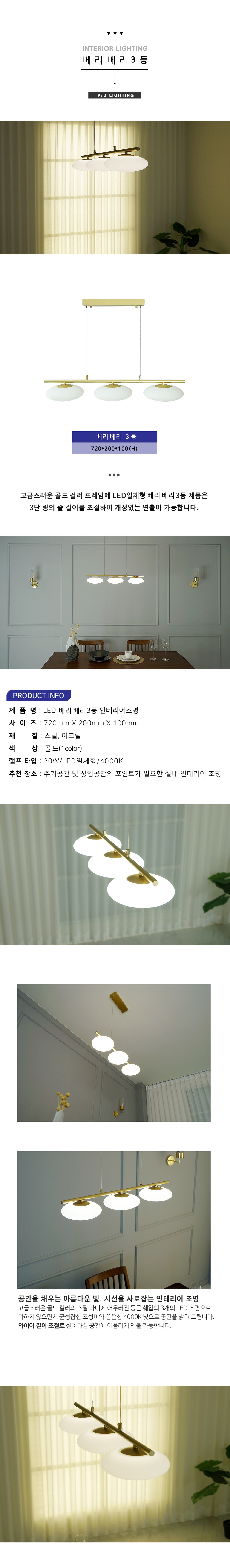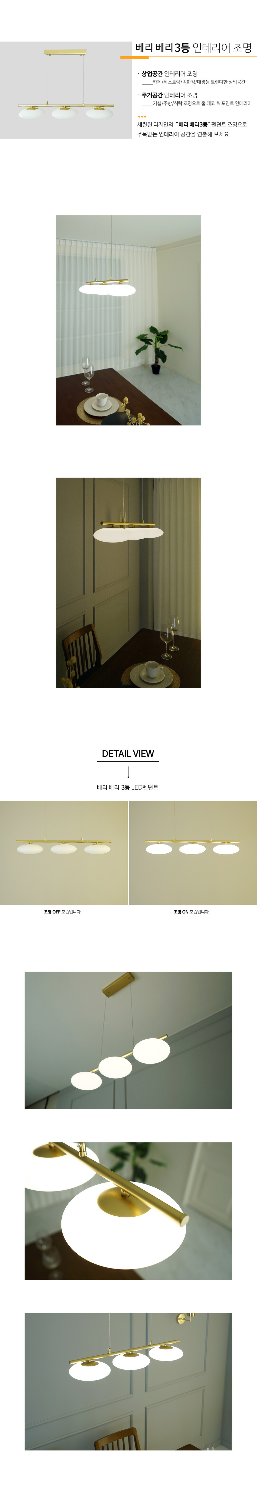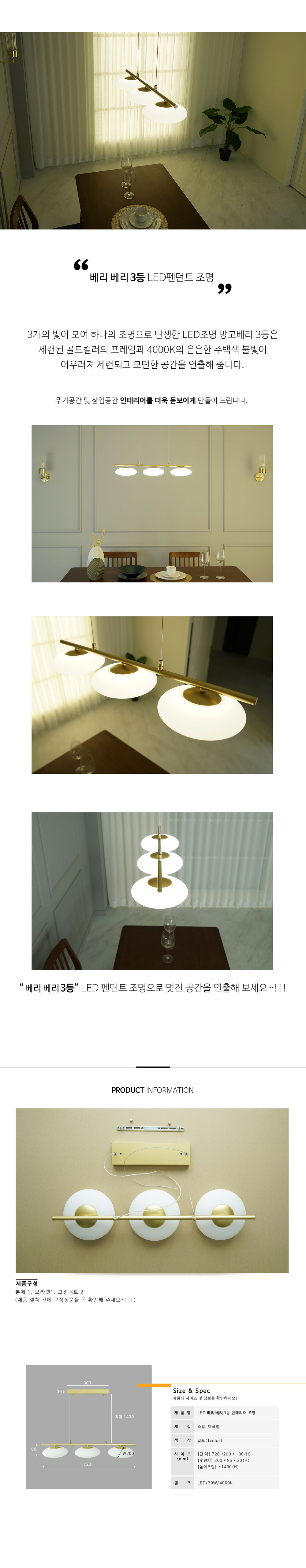 고급스러운 골드 컬러 프레임에 LED일체형 망고베리 3등 제품은 3단 링의 줄 길이를 조절하여 개성있는 연출이 가능합니다.