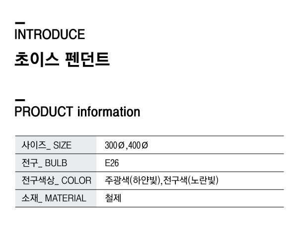 [빈티지조명] 초이스 펜던트 300Ø,400Ø (빈티지,신주브론즈)