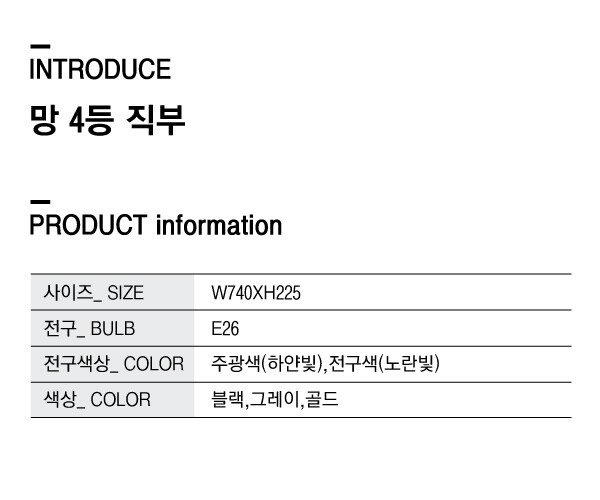 망 4등 직부/펜던트 CH (블랙,그레이,골드)