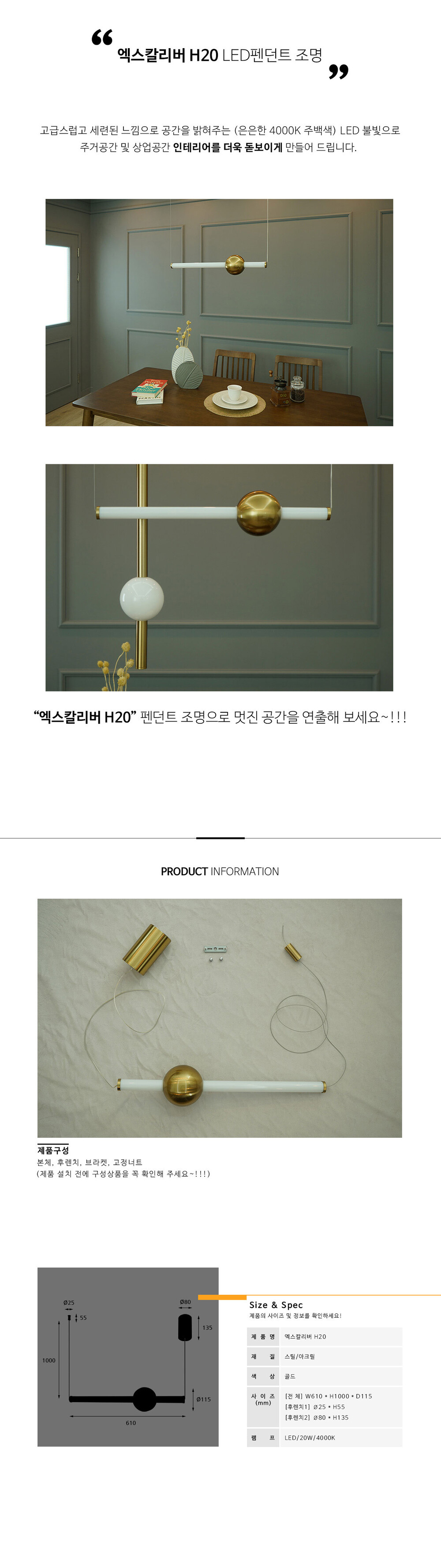 엑스칼리버 H20 펜던트 LED 20W
