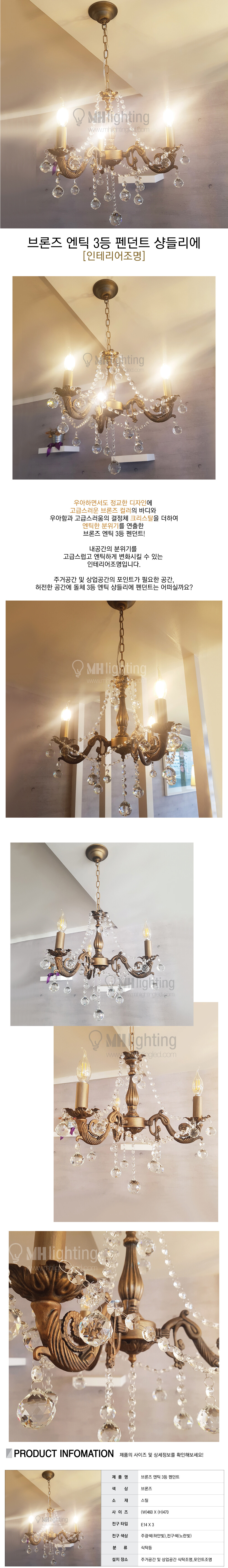 브론즈 엔틱 3등 펜던트