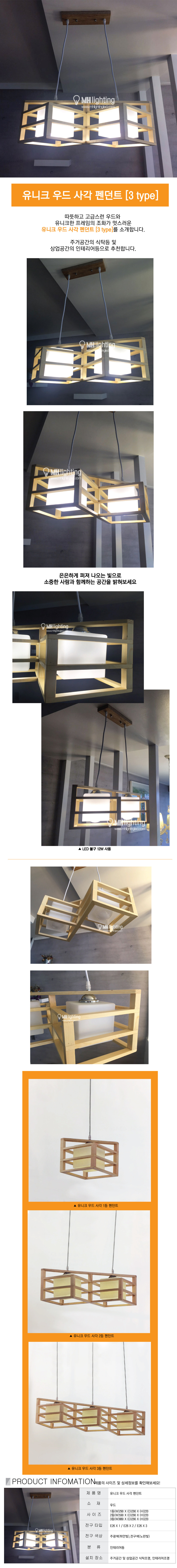 유니크 우드 사각 펜던트 [ 3 type ]
