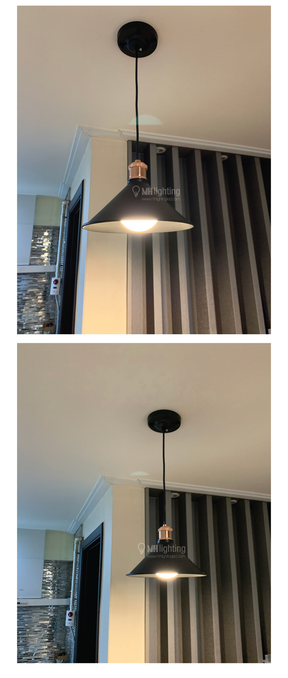 <산본문화조명이 시공한 '로즈골드 갓 펜던트' 현장 설치 모습입니다>