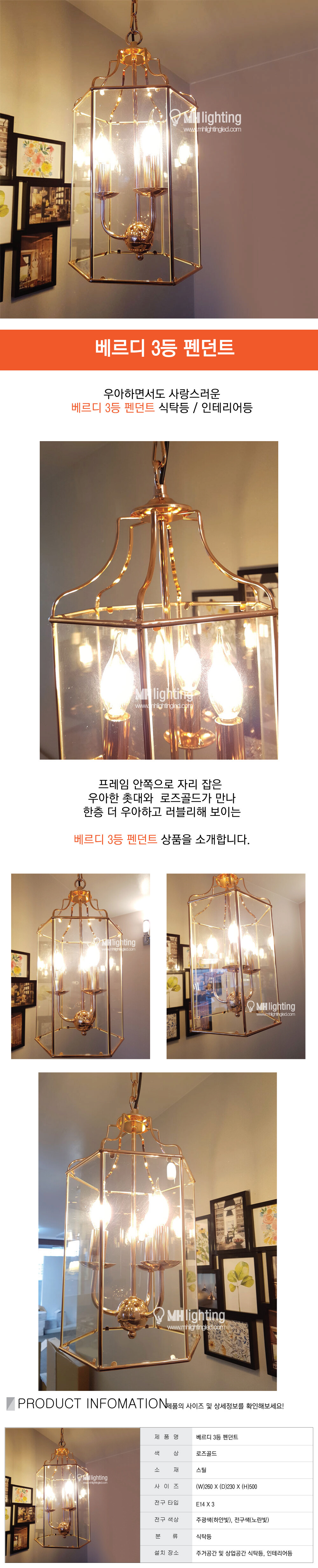 베르디 3등 펜던트 로즈골드