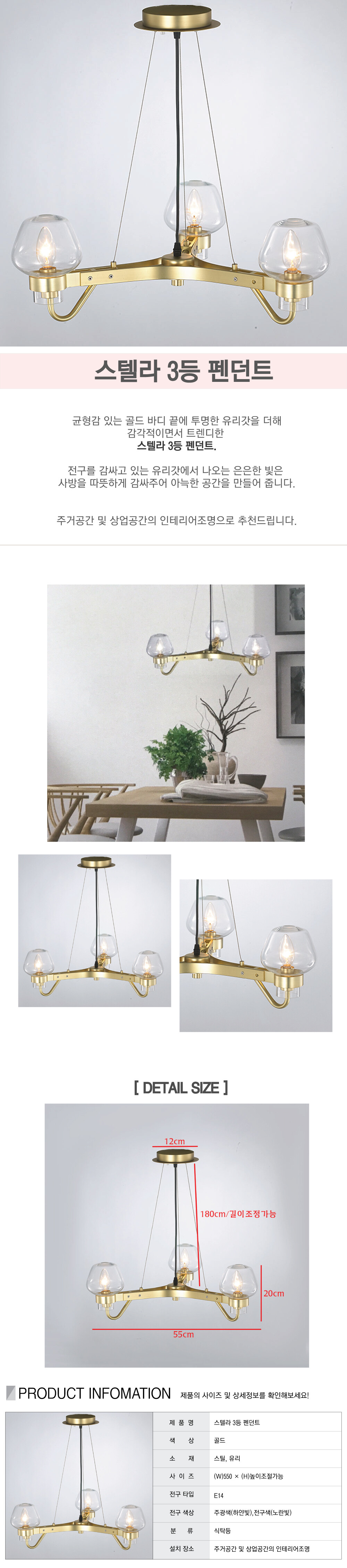 균형감 있는 골드 바디 끝에 투명한 유리갓을 더해 감각적이면서 트렌디한 펜던트