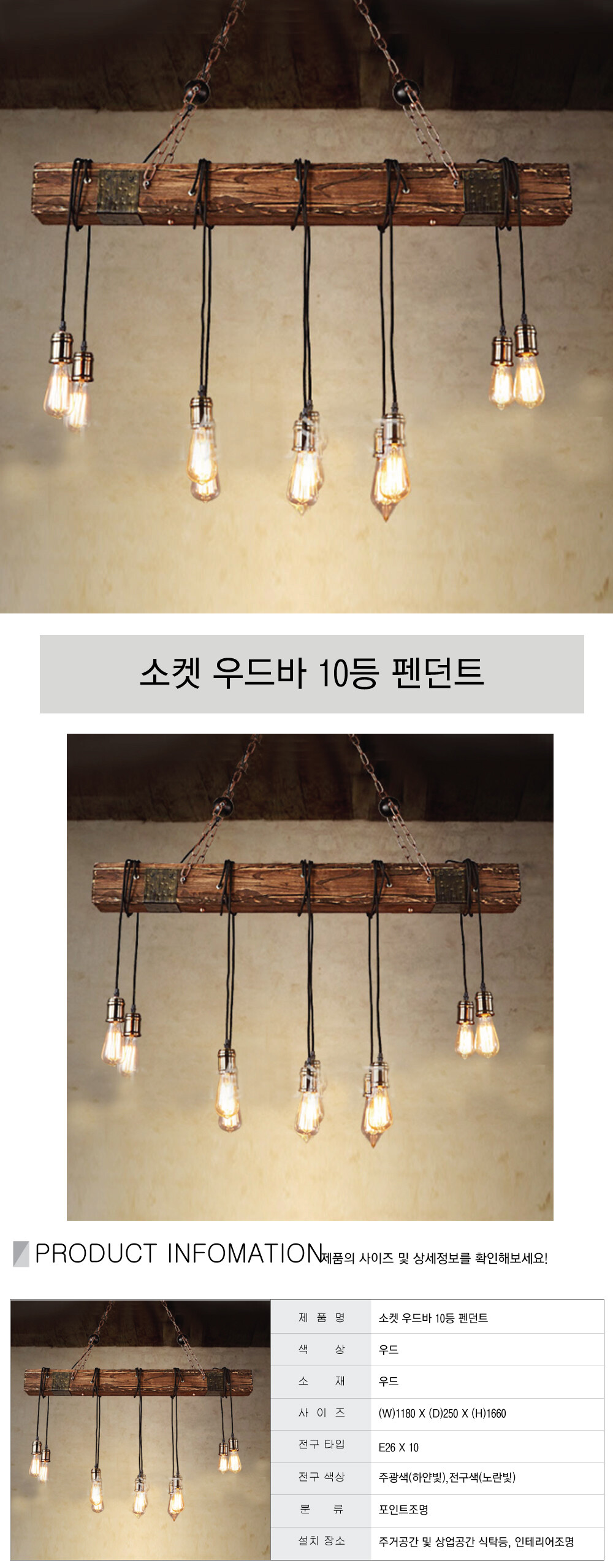 소켓 우드바 10등 펜던트
