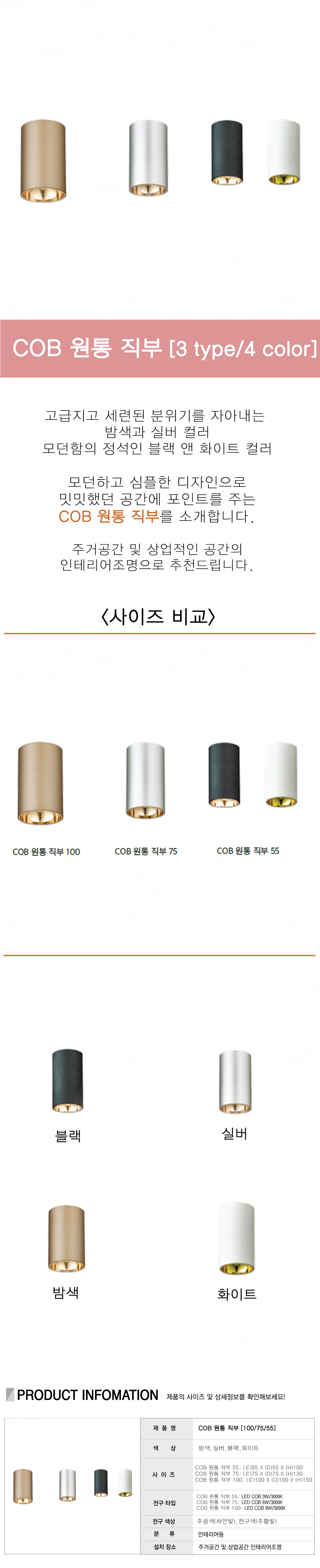 COB 원통 직부 [3 type/4 color] (LED전구 포함)