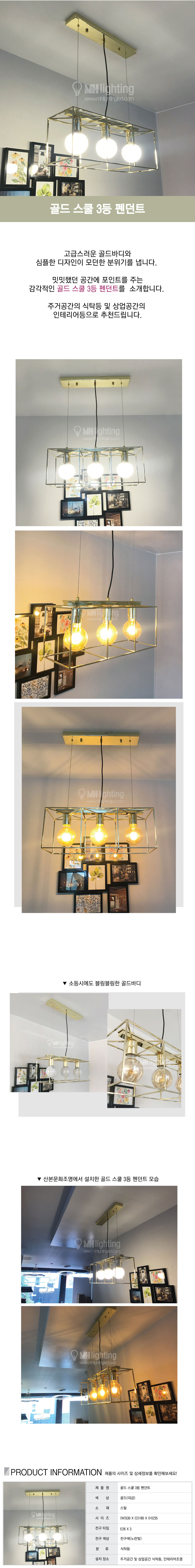 고급스러운 골드바디와 심플한 디자인이 모던한 분위기를 내는 감각적인 골드 스쿨 3등 펜던트