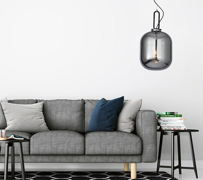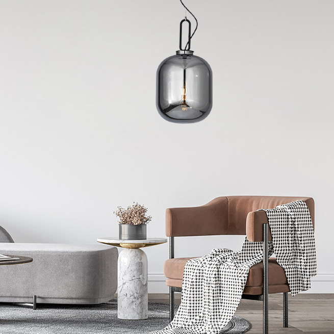 블랙 컬러를 살짝 입힌 유리 갓에 광택을 더해