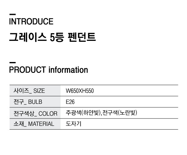 그레이스 5등 펜던트