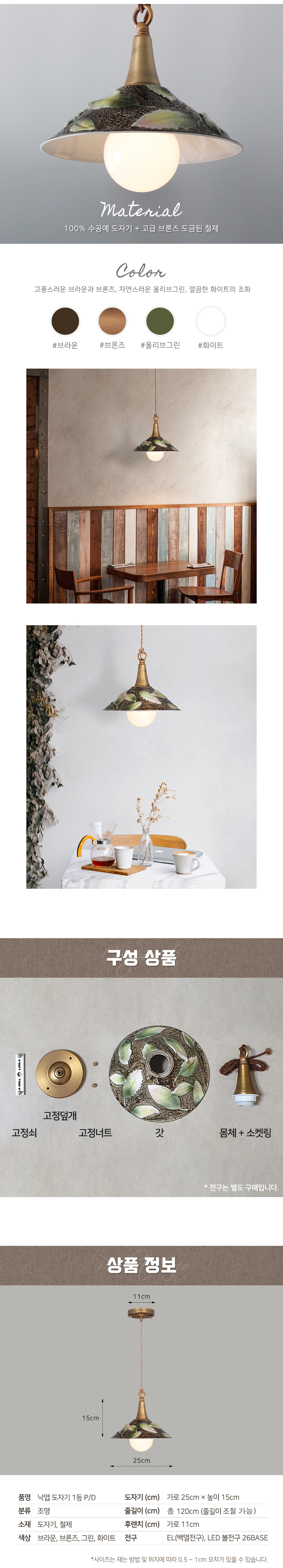 낙엽 도자기 1등 펜던트