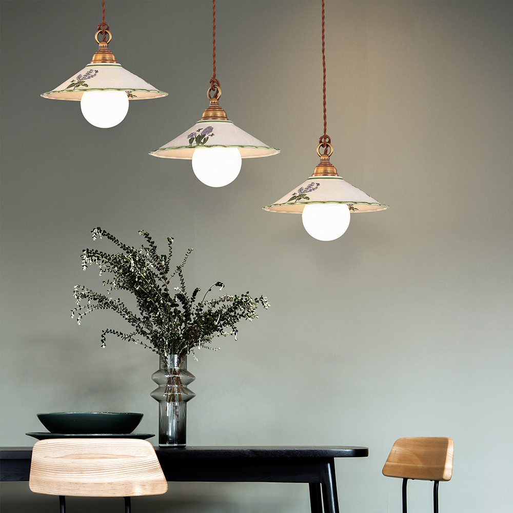 플라워 도자기 3등 펜던트
