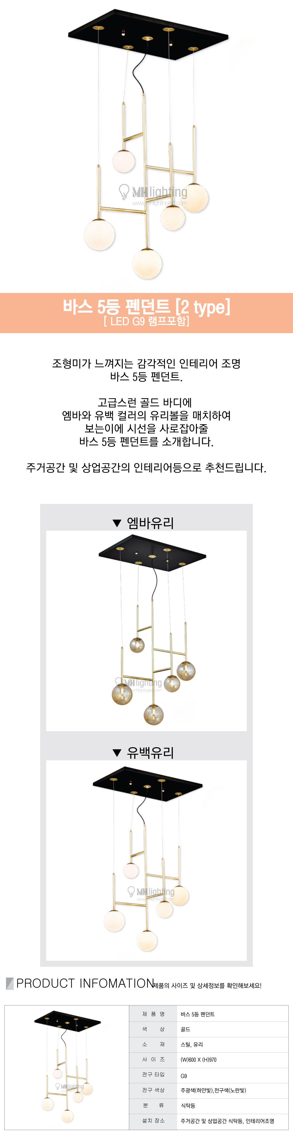 바스 5등 펜던트 [2 TYPE] LED G9 램프 포함