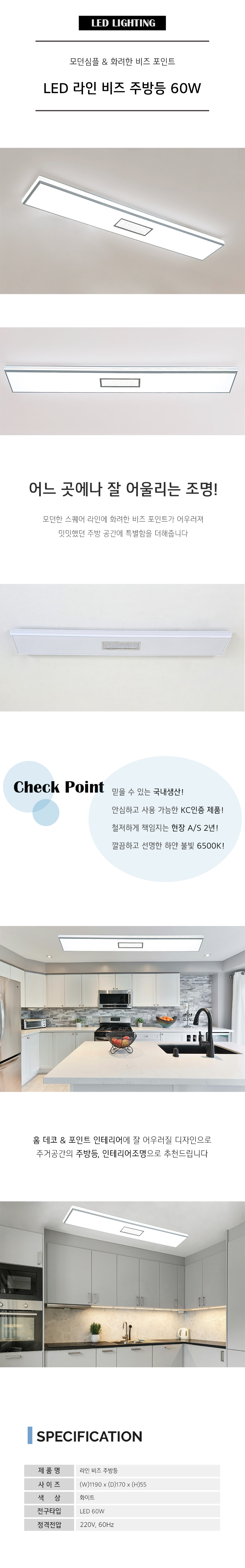 LED 라인 비즈 주방등 60W